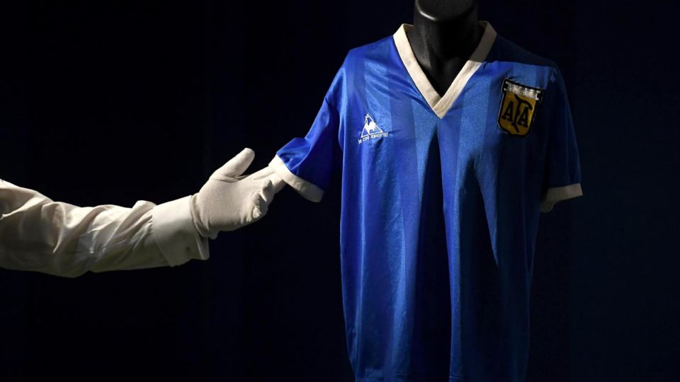 Se trata de la camiseta con la que Diego Armando Maradona consiguió "una manita" de Dios para aniquilar a Inglaterra en el Mundial que se celebró en México, en 1986.
