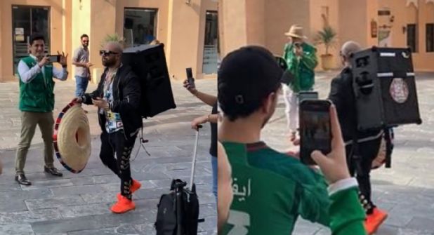 Un ingenioso aficionado mexicano recorrió las calles de Qatar con una bocina grande en su espalda y con el sonido a todo volumen del famoso