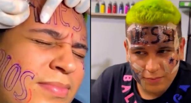 A través de redes sociales ha circulado un video en donde se puede ver al aficionado de la selección de Argentina acudir al estudio, mientras el tatuador le está realizando el tatuaje en la frente con la pala Messi, mientras que en una de sus mejillas se ha puesto los títulos de la Albiceleste, y en la otra “D10S” en alusión a que un gran sector de los aficionados al fútbol ha catalogado al astro del PSG como una persona superior al resto.