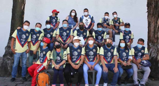 Los visitantes, en su totalidad migrantes, refugiados o integrantes de la comunidad LGBT, pudieron además disfrutar de un recorrido por la sala de trofeos del Club América y conocieron el aguilario donde se resguarda a la mascota oficial del equipo, el águila real Celeste.