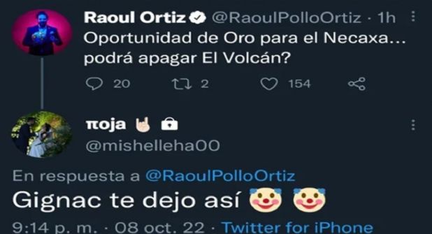 “Es normal que Mish le vaya al equipo de su papá. Sería raro que no lo hiciera jajaja... sólo quería decir que a mi me da igual si pasa Necaxa o Tigres. Son lo mismo para mí. Saludos, no le tiren, todos pensaríamos igual. Ánimo”, escribió el narrador de TNT Sports y HBO Max.