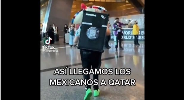 “Mexicano llegando a Qatar con una bocina gigante como si estuviera en el metro de la CDMX”, se ve en un video en redes sociales.