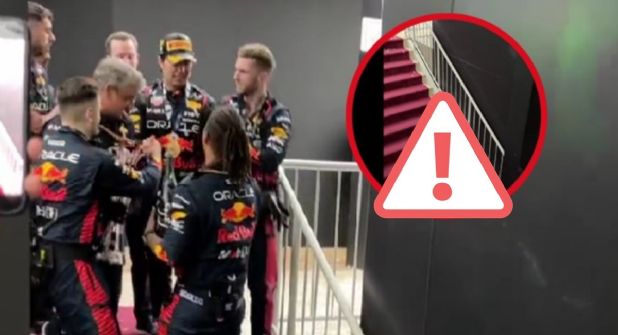 El video que ya se hizo viral en redes sociales muestra este escenario, sin embargo no queda claro si el equipo de la escudería abandonó a Verstappen para celebrar con Checo o es una escena que la casualidad nos regaló.