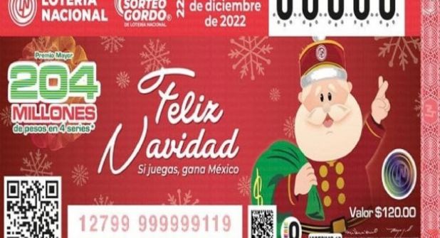 La Lotería Nacional, llevará a cabo, este 24 de diciembre del 2022, el sorteo "Gordo de Navidad" con un premio mayor de 204 millones de pesos y se distribuye en cuatro series.