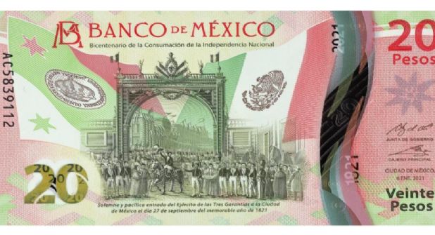 Un usuario de Mercado Libre ha puesto a la venta un billete de 20 pesos de la familia G , el cual tiene un fragmento de la obra artística referenciada con la cédula "Solemne y pacífica entrada del Ejército de las Tres Garantías a la Ciudad de México el día 27 de septiembre del memorable año de 1821. A su izquierda ondea la Bandera del Ejército de las Tres Garantías y, a la derecha, la Bandera de México.