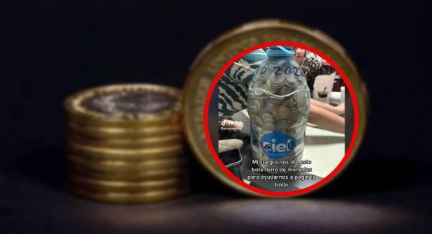En el video, la pareja de novios deja ver a sus seguidores la botella de plástico repleta de monedas de 10 pesos, acto seguido la abren con un cuchillo y comienzan a acomodar acomodar las cientos de monedas para poder comenzar a contarlas y saber a cuando ascendía el monto que su suegra les había obsequiado.