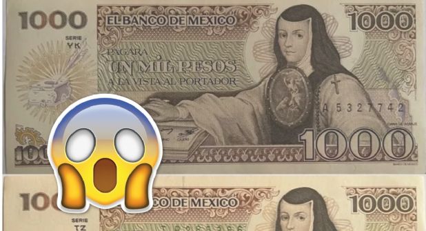 Con relación al billete de 1000 pesos, este fue lanzado en 1984 y lleva impresa la imagen de Sor Juana Inés de la Cruz. En su anverso además de la imagen de Sor Juana, aparece la leyenda “EL BANCO DE MÉXICO PAGARÁ UN MIL PESOS A LA VISTA AL PORTADOR”. Los colores que predominan son el verde oliva y el beige.