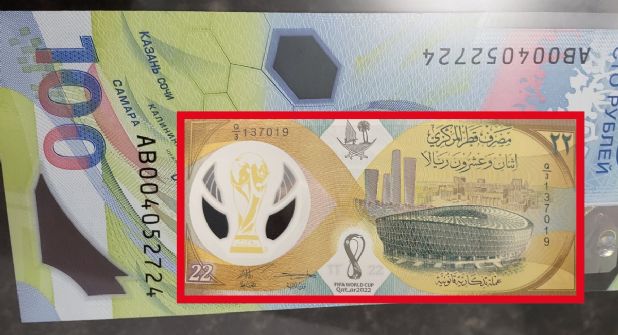 Como se mencionó anteriormente, Rusia fue el primer país en emitir un billete alusivo al mundial 2028, en el cual apareció la imagen de su portero Lev Yashin, el único en la historia en ser balón de oro. Por otra parte, en Qatar también repitió esta hazaña en la edición 2022, no obstante, en su billete apareció el estadio Al Bavt, el trofeo mundialista, un dhow y el fuerte de Zubara.