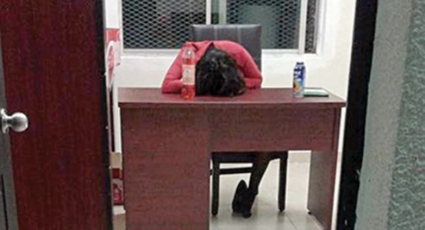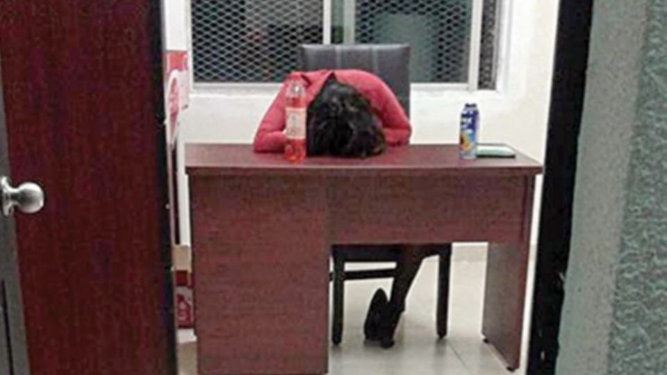 Por dormir en horas de trabajo una empleada de la Dirección de Seguridad Pública municipal de Saltillo, será arrestada luego de ser fotografiada el pasado fin de semana al quedarse dormida en si escritorio de trabajo.
