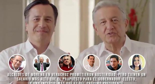 Aunque una de las banderas del partido morenista es la “austeridad”, información oficial acredita que los presidentes de Poza Rica, Xalapa, Minatitlán, Coatzacoalcos, Río Blanco y Moloacán –incluidos los integrantes de sus cabildos- se aprobaron salarios que van desde los 48 mil 800 pesos hasta los 116 mil 281 pesos mensuales.