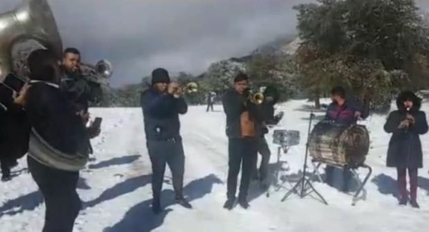 En un video difundido por redes sociales se puede ver a las personas bailando al son de la música y a los integrantes de la banda tocar bien abrigados, por las bajas temperaturas.