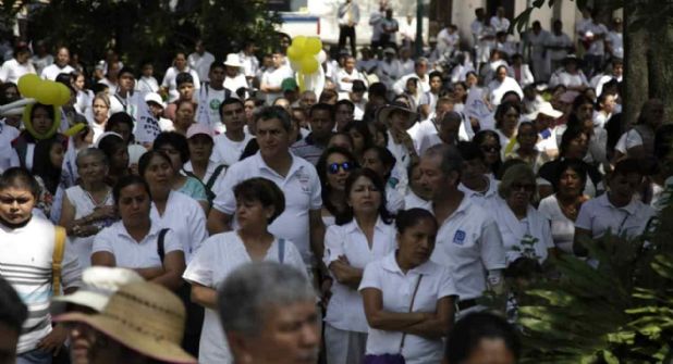 Los participantes, vestidos de blanco y con algunas pancartas y banderines, caminaron hasta el Centro de Cuernavaca.