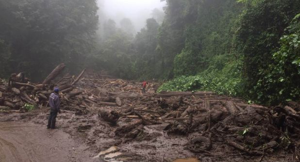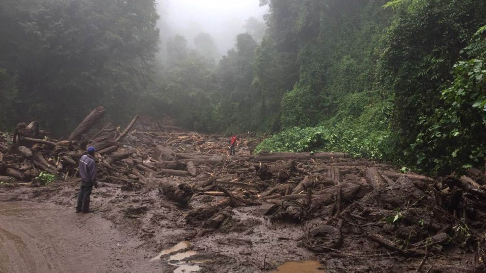 Por la noche se presentaron derrumbes en el tramo del Km 5+200 al Km 21+300 y se taparon dos alcantarillas, en los Km 12+600 y 16+500 provocando el cierre del camino en este último punto.