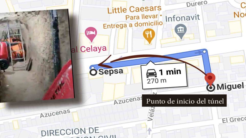 Sepsa, ubicada justo a la vuelta de donde aparentemente comienza el túnel, está a menos de un minuto en auto y tres minutos caminando sobre el bulevar López Mateos.