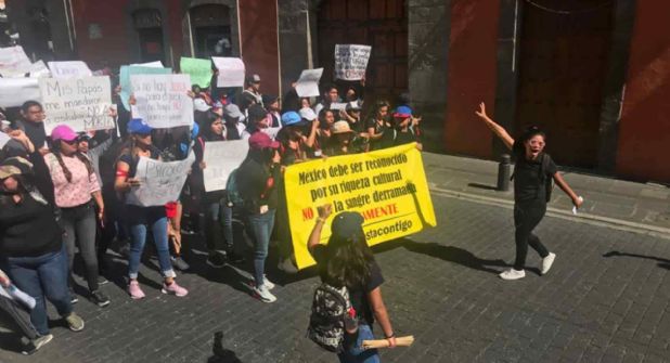 La tarea del gobierno para garantizar seguridad luce complicada: mientras se conformaban los contingentes estudiantiles en la Avenida Juárez, por ahí de las 6:15 horas fue encontrada una bolsa con restos humanos en la junta auxiliar San Felipe Hueyotlipan y horas más tarde dos hombres fueron asesinados en San Jerónimo Caleras.