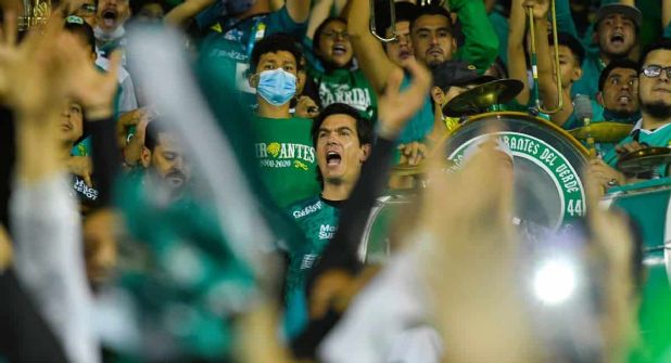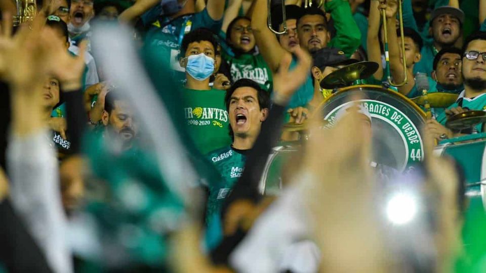 León, Guanajuato.- Como buen capitán, encabezando el ¡Dale León! para apoyar a la Fiera desde las tribunas, fue captado Ignacio González en el encuentro de la Final de ida entre León y Atlas del Torneo Apertura 2021 celebrado en el Nou Camp.
