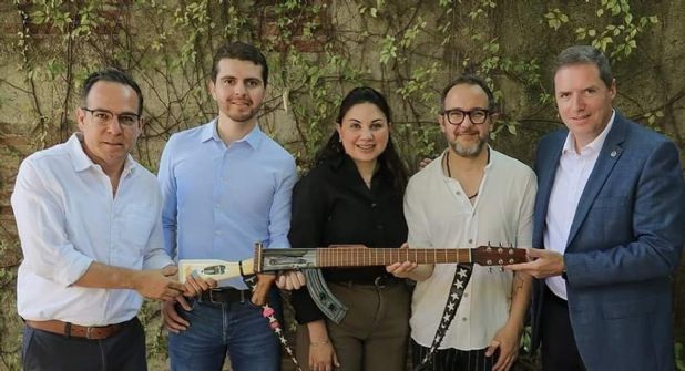 El cantautor colombiano desde 2006 ha colaborado con la Oficina de las Naciones Unidas contra la Droga y el Delito (ONUDD) en la campaña “Generación de la no violencia”, instancia a partir de la cual ha recibido los fondos y los rifles de asalto para crear diversos objetos.