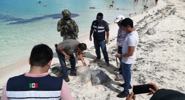 Elementos de la policía Quintana Roo Benito Juárez, división policía turística, en conjunto con personal de la Secretaría de Marina (Semar), Protección Civil, la Dirección General de Ecología y Profepa acudieron a la orilla de la playa para verificar la zona.