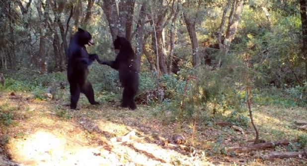 SALTILLO.- En la Sierra de Zapalinamé, en Saltillo, Coahuila, fueron grabados en video dos osos negros bailando, una linda y tierna escena que conmueve a quienes lo ven. La organización protectora de animales Ursus MX, grabó el video y lo compartió en sus redes sociales.