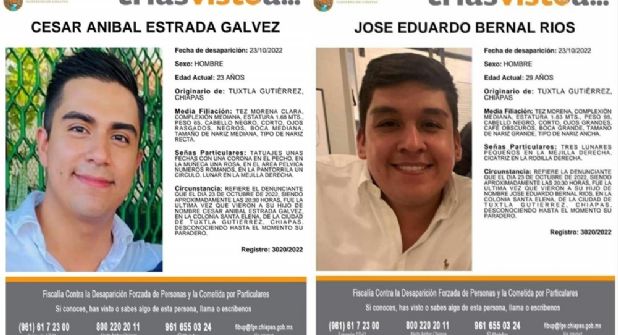 A pesar de que sabe que la situación en Chiapas es delicada por el tema de violencia, externa que no tienen miedo y que no descansarán hasta que den con el paradero de César Aníbal y José Eduardo.