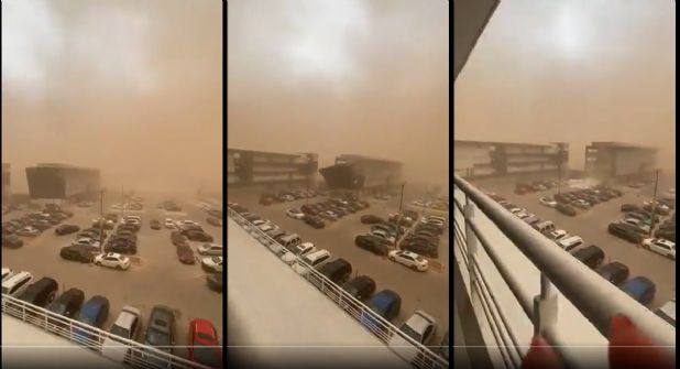 En el vídeo que aquí les mostramos, unos internautas publicaron imágenes del momento en que una estructura de la Universidad de Durango ubicada en Mexicali se desplomó debido a las fuertes corrientes de arena y viento que los cubrieron.