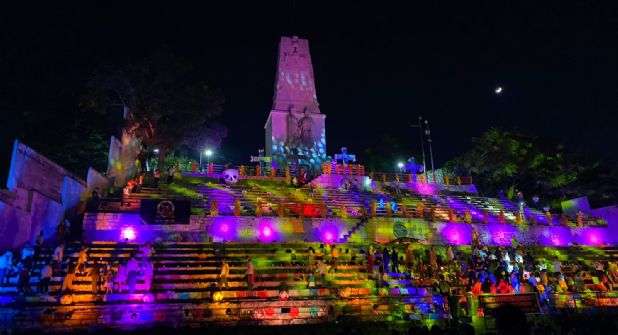 Adornado con 4 toneladas de la flor tradicional de cempasúchil, 1,300 veladoras y al menos 80 personajes, entre escritores, de la política, cultura y demás, fue elaborado en esta capital de Chiapas el altar de muertos más grande del país, con poco más de 1200 metros cuadrados.