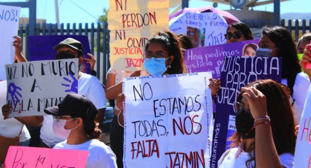 OAXACA.- Con la exigencia de cárcel a feminicidas, familiares y amistades de la cantante Jazmín Zárate Aquino, así como colectivas feministas se manifestaron en el marco de la audiencia de vinculación a proceso en contra de Edmundo A., inculpado en el asesinato.