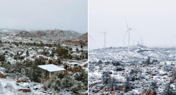 La caída de la nieve fue notoria desde el kilómetro 61 de la carretera Mexicali-Tecate, antes de la caseta de Fiarum, y se prolongó hasta casi el kilómetro 95.