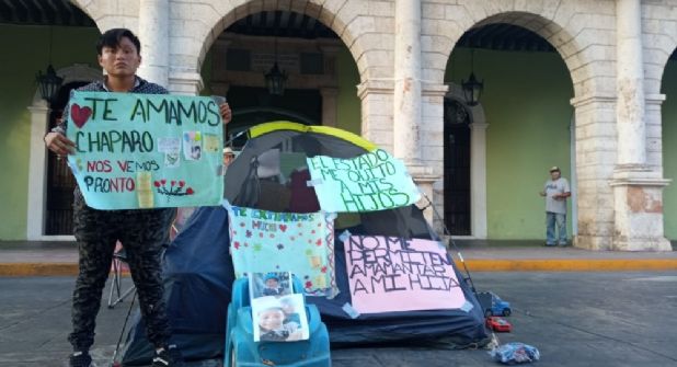 MÉRIDA.- “¡Si me tengo que quedar aquí lo haré porque quiero pasar con mis hijos la navidad!”, exclamó Julissa Chuc Haas, quien desde el viernes 16 de diciembre instaló una casa de campaña en la que permanecerá hasta que le regresen a sus hijos. Lleva casi dos meses separada de Génesis y Geyser.