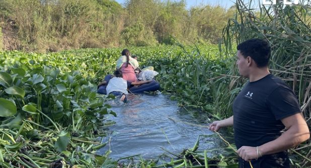 Un integrante de la Patrulla Fronteriza se lanzó al río y, después de ayudar a unos menores a llegar a tierra firme, sacó un cuchillo para rasgar el plástico con la finalidad de que los migrantes ya no se transportaran de esta manera, sin embargo, ya habían comprado otro.