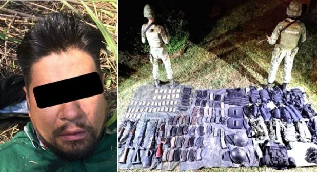 Los soldados detuvieron al capo en poder de un rifle antiaéreo tipo Barret calibre .50, así como con ocho fusiles de asalto, un lanzagranadas, tres granadas calibre .40, cuatro chalecos antibalas, dos cascos tácticos, cargadores y cartuchos útiles. Sus sicarios huyeron entre los arbustos.