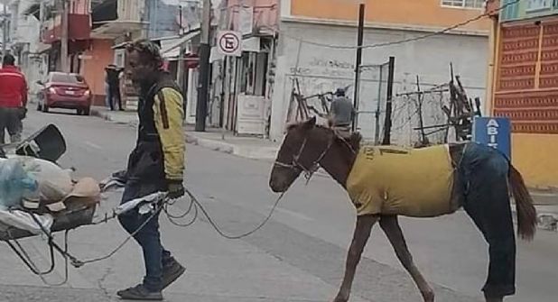 En las imágenes que circularon en redes sociales y que se volvieron tendencia se aprecia que el caballo es acompañado de un aparente chatarrero, que transita jalando una carretilla.