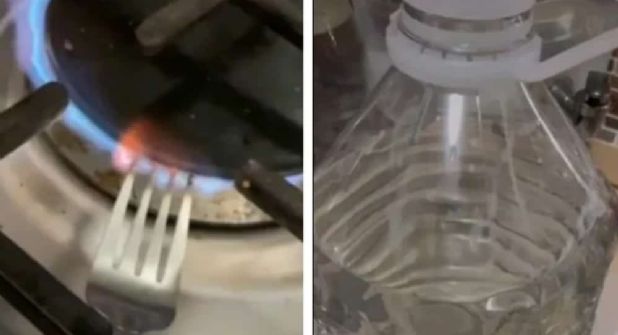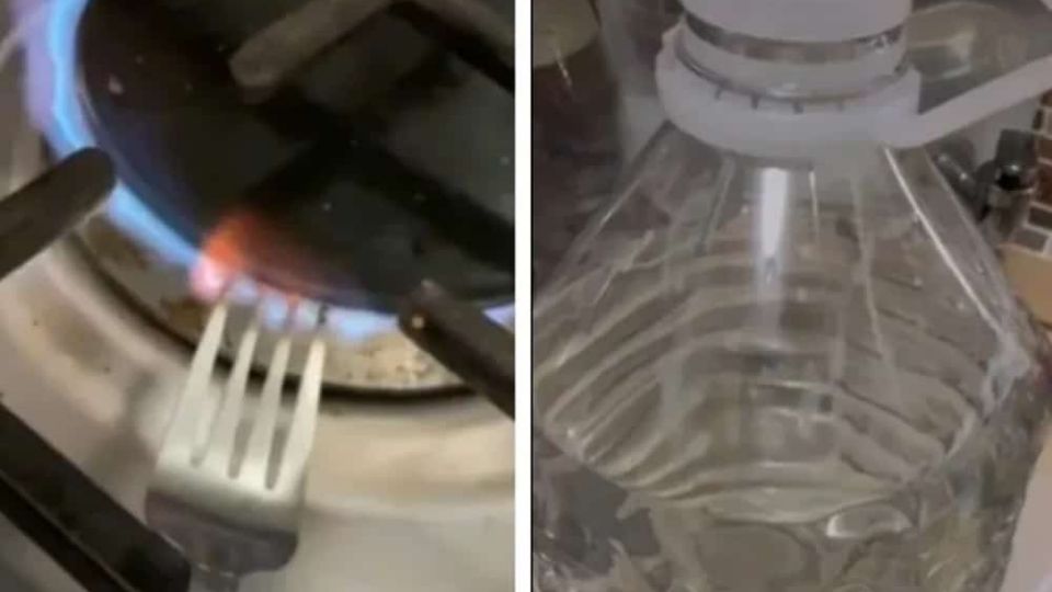 {"quote":"Ya llena tu botella, vas a calentar un tenedor para luego perforar en la parte de de abajo de la botella, así como lo hago"}