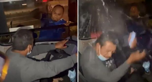 “Me pagas o te reviento los cristales”, dice uno de los sujetos que amaga al chofer.