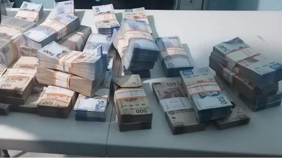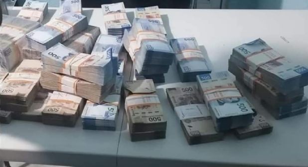 Al revisar el equipaje, hallaron tres bolsas de tela con fajos de billetes de diversas denominaciones en moneda nacional, con un monto de casi 10 millones de pesos.