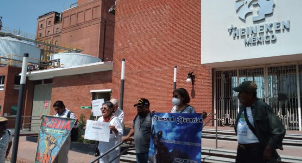 MONTERREY. - La cervecera Heineken fue clausurada simbólicamente por integrantes de diversos colectivos sociales, que denunciaron lo que consideran falta de compromiso de la firma holandesa, para aportar agua a Monterrey, de sus pozos particulares.