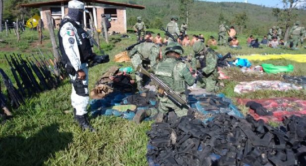 Durante el operativo de la Sedena, Guardia Nacional, Guardia Civil y de las fiscalías estatal y federal, las autoridades aseguraron 35 fusiles de asalto a los criminales.