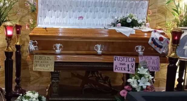 OAXACA. - Pegado al ataúd el cartel lo expresa todo: ¡Justicia para Aidé! El pasado lunes 25 de julio, mientras se celebraba la Guelaguetza en Oaxaca, Aidé Hernández, víctima de feminicidio recibía el último adiós tras casi un mes de agonía. El 28 de junio, hombres armados la hirieron de gravedad. Ella caminaba rumbo a su casa en el Fraccionamiento El Rosario cuando los agresores salieron al paso. Hasta el momento nada se sabe de sus asesinos.