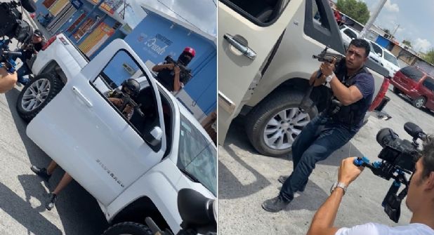 En redes sociales circulan fotografías de las escenas de la película, la cual es producida por Art Ríos Studio y Ola Studios. En las imágenes se muestra a hombres armados a bordo de camionetas, con armamento de alto poder, mismo que es de utilería y no representa ningún riesgo para la población.