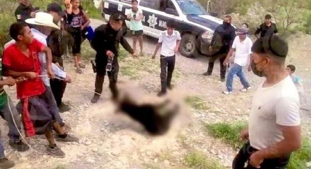 De acuerdo con las imágenes difundidas por el activista, varios habitantes de Castaños amarraron, palearon, jalaron y asfixiaron con cuerdas a un osezno de 4 meses, cuando este bajó con la intención de tomar agua.