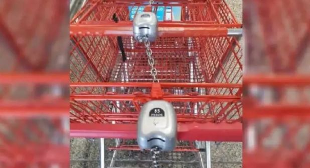 Algunos comentarios indican que puede ser para que los carritos no se queden en los cajones de estacionamiento, para que las personas no se los lleven a sus casas más cercanas.