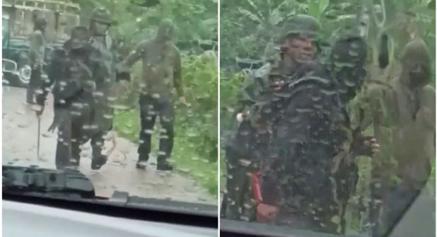 A través de un breve video, se observa una camioneta verde atravesada en un camino pavimentado, y cómo dos hombres de rasgos indígenas, uno con un machete y el otro con un palo, se llevan al soldado identificado como Carlos Daniel “M. G”.