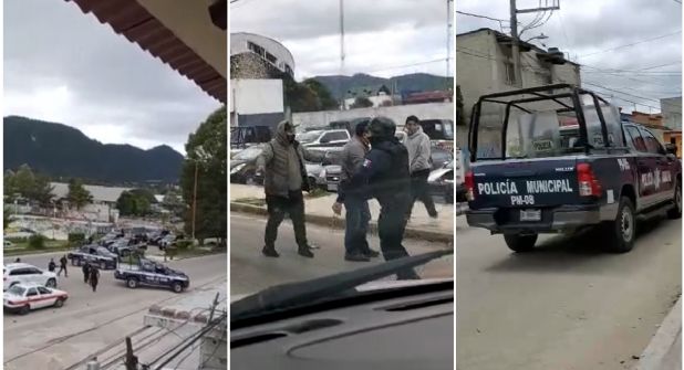 Los hechos de violencia ocurrieron cerca de las instalaciones de la Policía Municipal, donde decenas de hombres cubiertos del rostro con pañuelos y cubrebocas, y armados con palos, piedras y hasta con armas de fuego, llegaron para exigir la liberación de la persona detenida.
