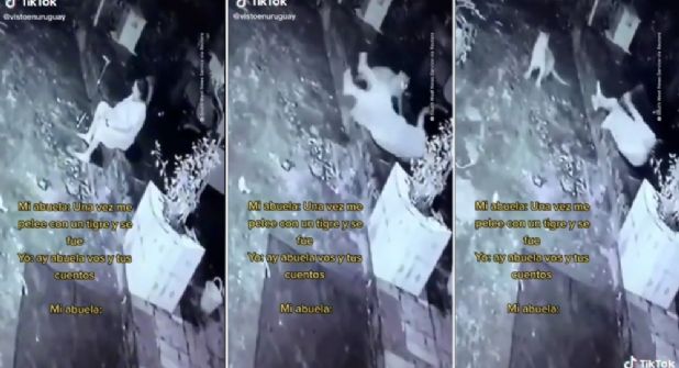 “Mi abuela: Una vez me pelee con un tigre y se fue. Yo: Ay, abuela, vos y tus cuentos. Mi abuela: ...”, es el texto que aparece en el clip de apenas 13 segundos de duración. Tan corto pero suficiente para ver la valentía de la abuela que se defiende del ataque del tigre.