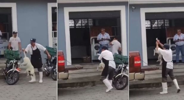 Según los testigos, esta no sería la primera vez que dicho personal de la carnicería agrede o lesiona a perritos en situación de calle.