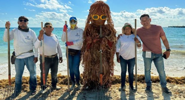 “Les presento a Sargazin, el nuevo acompañante de las cuadrillas anti sargazo en Playa del Carmen. Si lo ven, tómense la foto con él y ayúdenos a mantener limpias nuestras playas” dijo la alcaldesa.