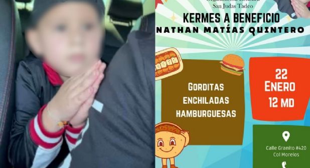 Por esta razón en busca de fondos para costear los gastos del niño la Organización Benéfica San Judas Tadeo realizará una kermés a favor de Nathan Matías el domingo 22 de enero en la calle Granito número 420, colonia Morelos.