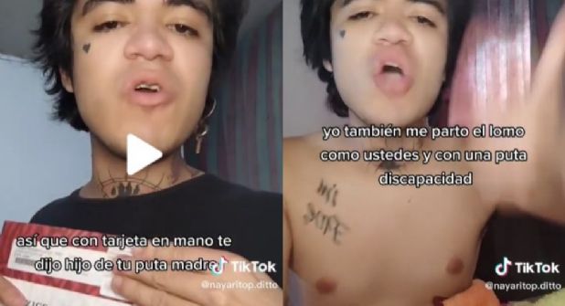 El video termina con el joven presumiendo su tarjeta Bienestar “así que con tarjeta en mano te digo hijo de tu puta madre ves que sí estoy discapacitado”.