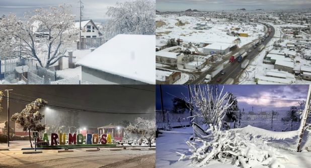 Este martes el poblado amaneció con temperaturas de aproximadamente 5º centígrados, capas de nieve sobre la comunidad y viajeros varados monitoreando las cuentas de redes sociales de Protección Civil.