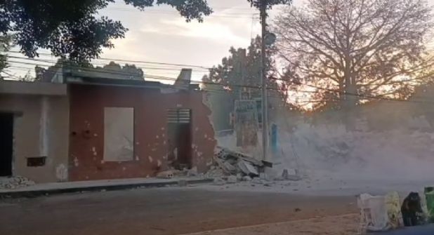 MÉRIDA.- Este martes inició la demolición de las casas de los vecinos que vivían en la calle 43A con 46 y 48 del centro de Mérida, Yucatán, en las inmediaciones del parque de La Plancha. En esta área se construirá un parque. El proyecto lo aprobó el presidente Andrés Manuel López Obrador, luego de descartar la construcción de una estación del Tren Maya o una base de la Guardia Nacional en el sitio.